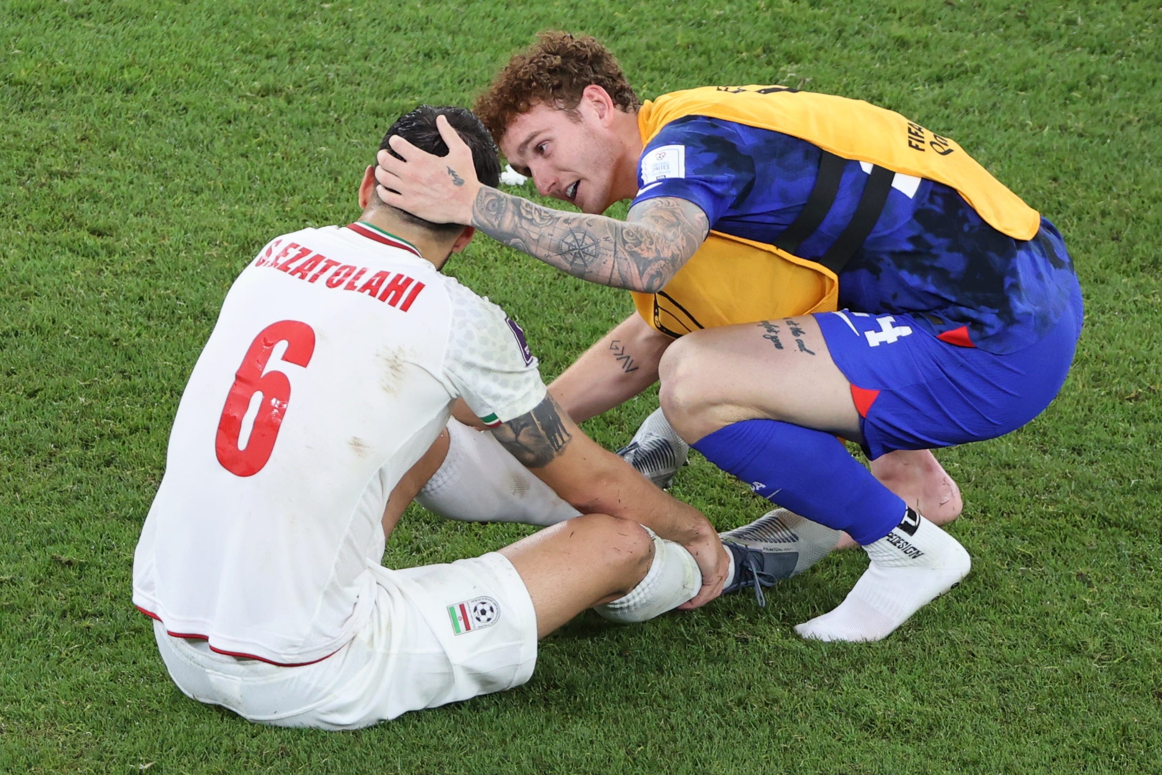 The United States beat Iran by one goal in a very close match, one that was a nail-biter until the very end, and had a lot of aggressive physical contact. In a touching display of sportsmanship, American players consoled their Iranian counterparts afterwards. American forward Josh Sargent gave Ezatolahi a hug on the ground.